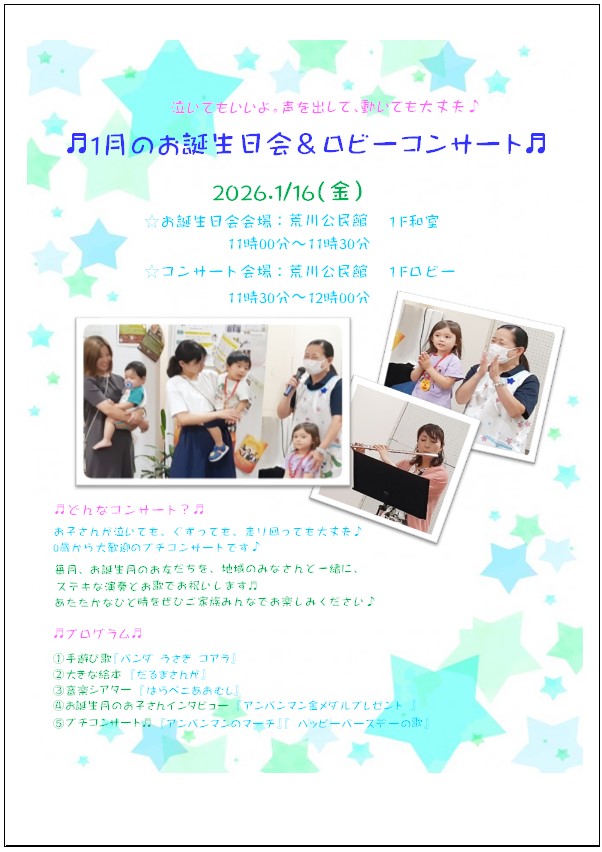 『☆1月のお誕生日会&ロビーコンサート☆』を開催します♪