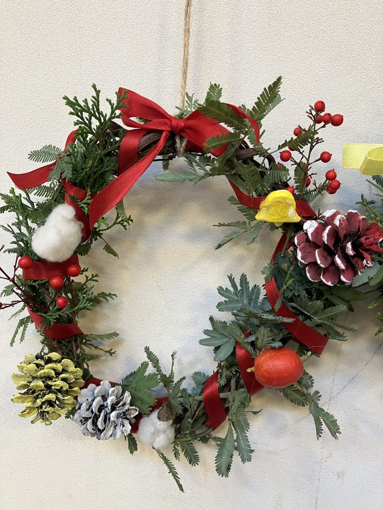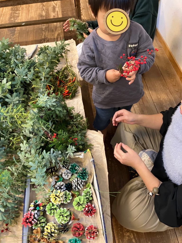 オリジナルリースが出来上がり参加したお母さん達は家に飾るのが楽しみと話してくれました!綿を栽培しさつま芋のツルでリースを作り自然素材を使ったリースはどれも素敵でした♪参加してくれた方のリースはInstagramに載せてありますので見て下さいね。個性あふれる唯一無二のリース作り楽しかったですね!