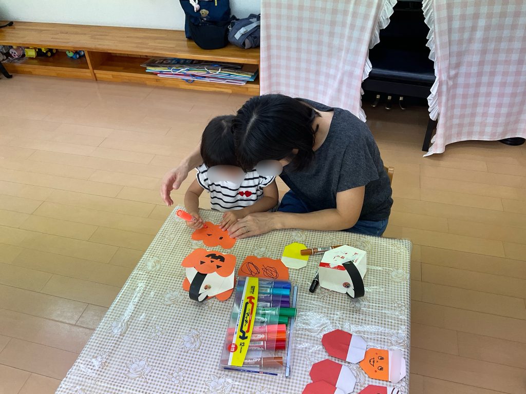10月1日(水)、2日(木)の作ってあそぼうでは、ハロウィンにちなんで、かぼちゃおばけの小物入れを作りました❣️