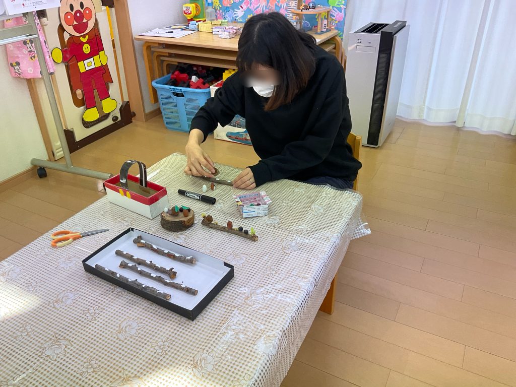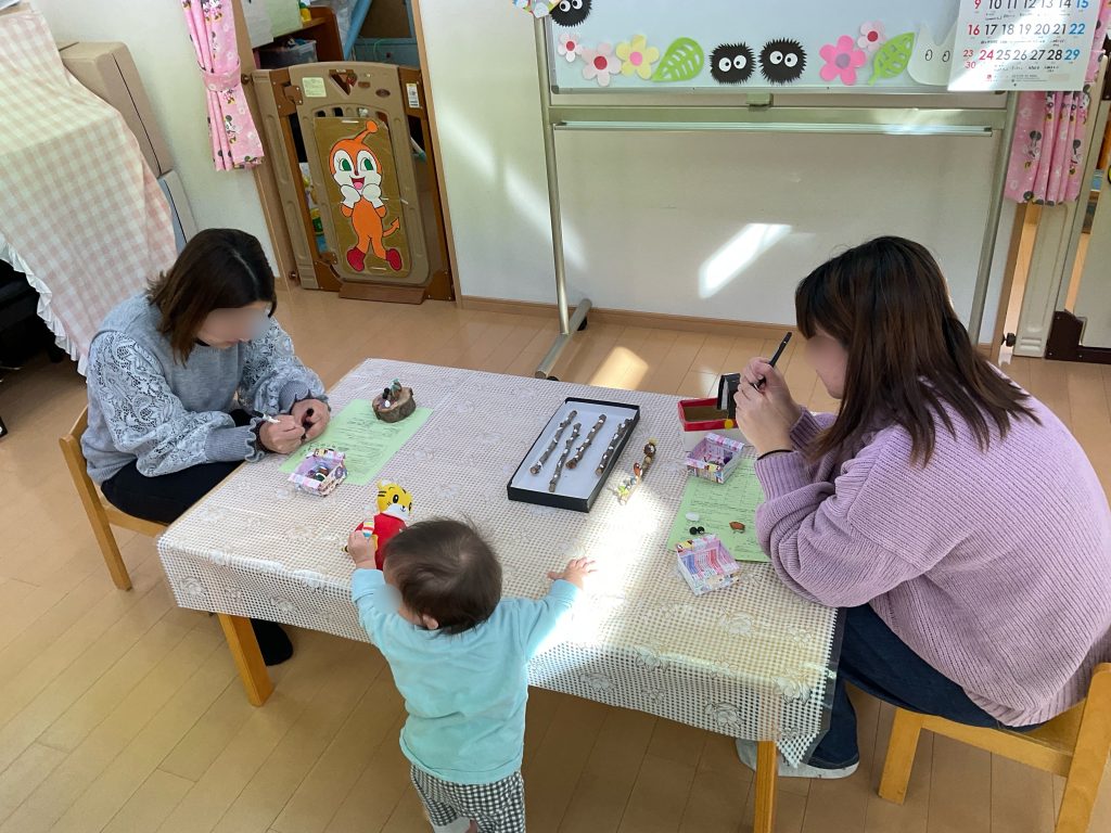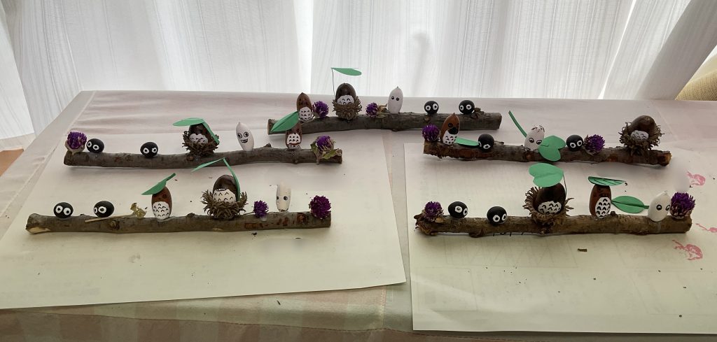 11月4日(火)のどんぐり製作では、どんぐりを使って、トトロの飾りを作りました❣️