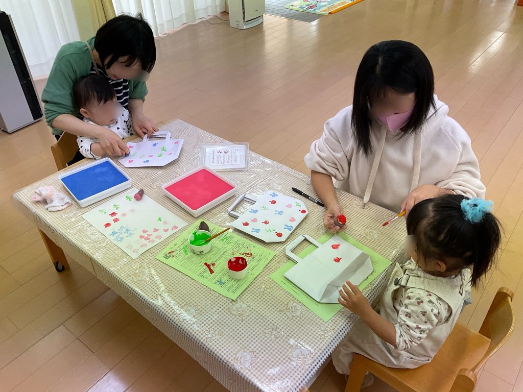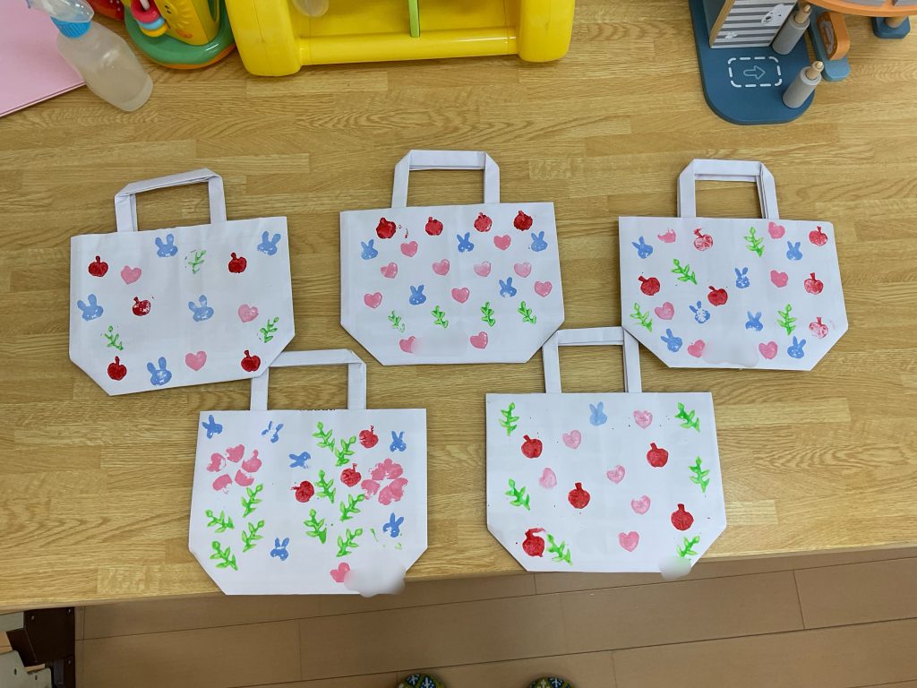 11月5日(水)、6日(木)の作ってあそぼうでは、さつまいものハンコを使ってエコバックに模様をつけました😄