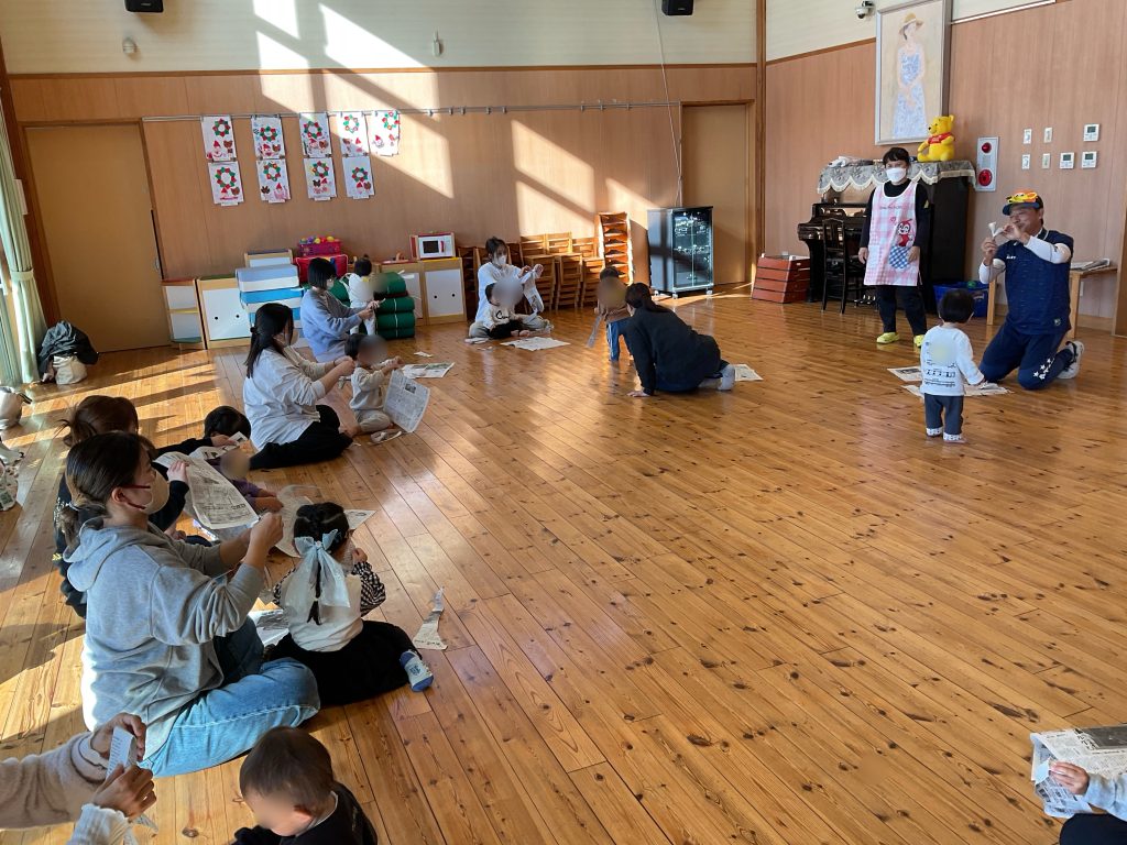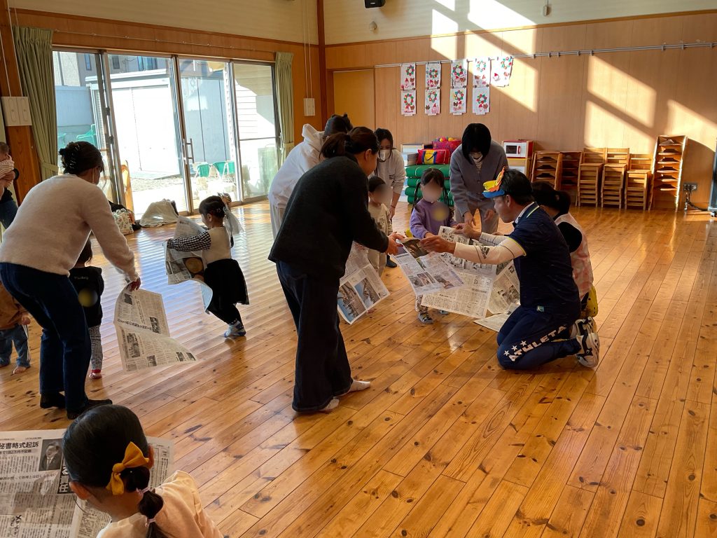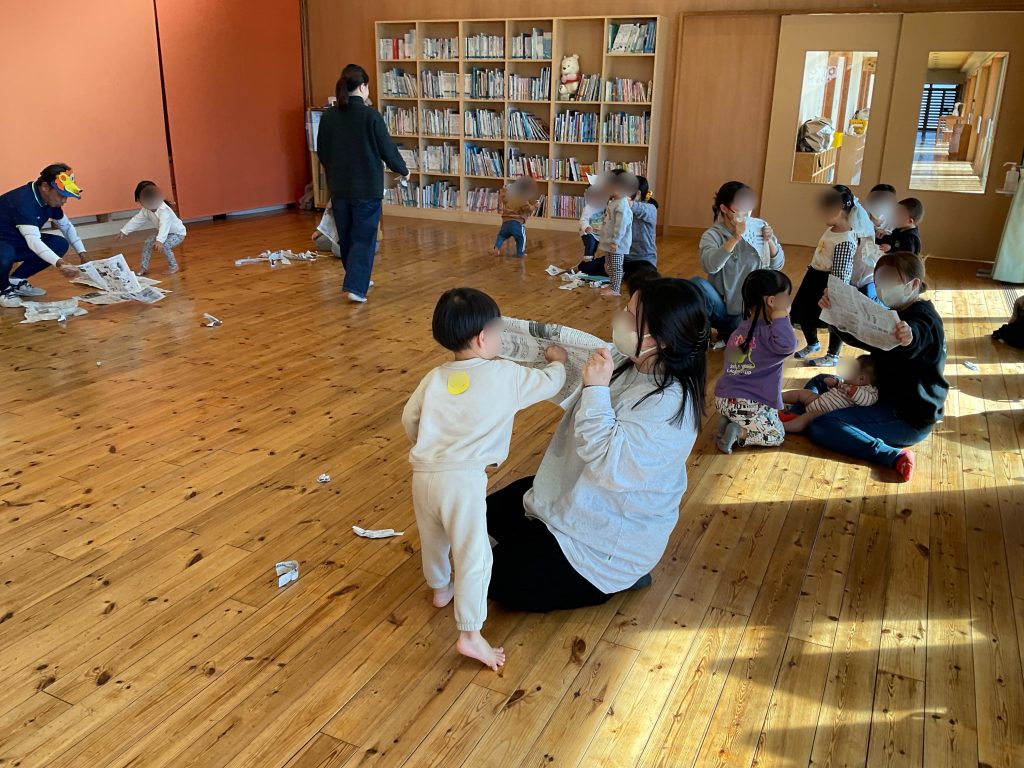新聞紙をビリビリしたり、丸めてボールにしたり、みんな楽しそうに行なっていました❗️