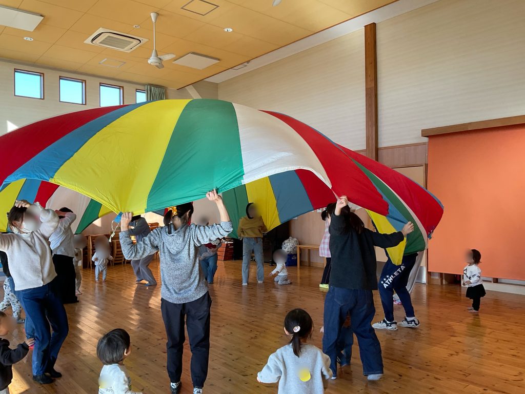 膨らませて、中に入ったり、ボールを入れて遊んだりしました♫