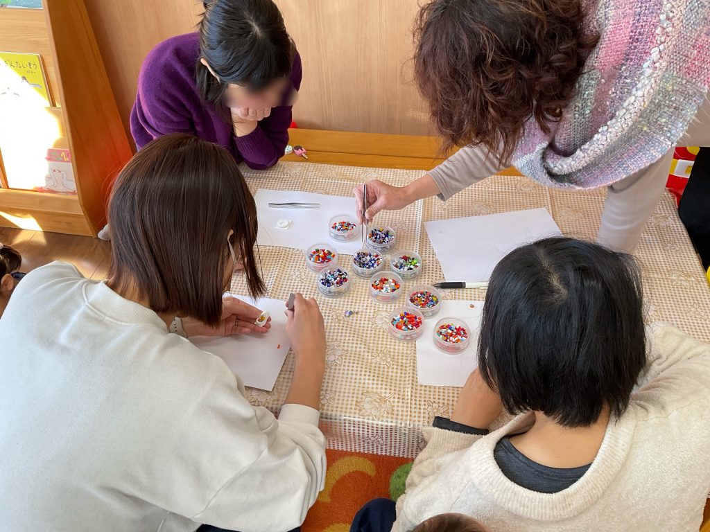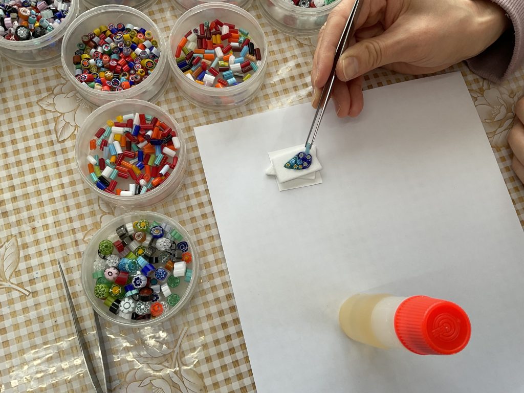 ガラスの色や、大きさ、模様がそれぞれ違うので、皆さん真剣に悩んで取り組んでいました☺️