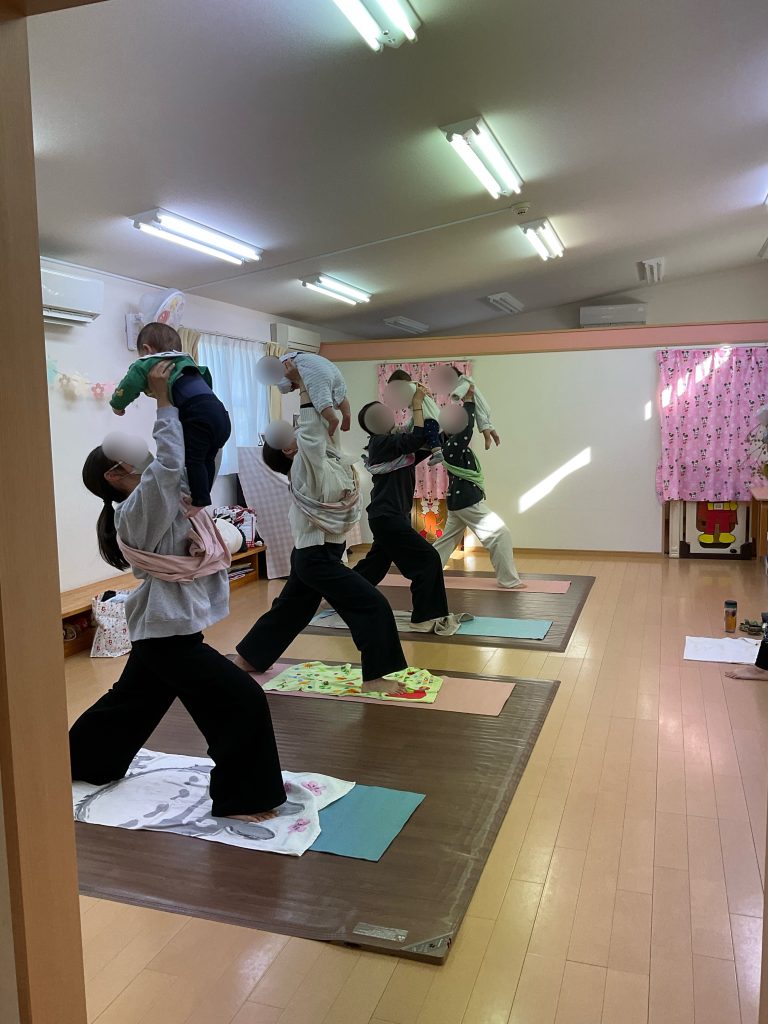 風呂敷で遊んだり、風呂敷を使ったスリングのやり方も教わりました😃