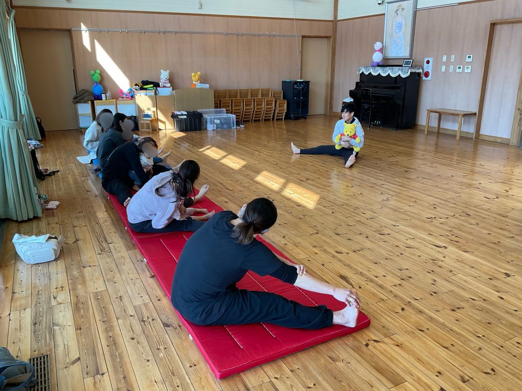 まずは、ストレッチやお子さんを負荷にした筋トレを行なっていきます☺️
