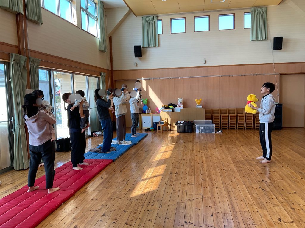 3月11日(水)に奈良保育園のホールで、体操の小林先生による『親子エクササイズ』が行われました❗️
