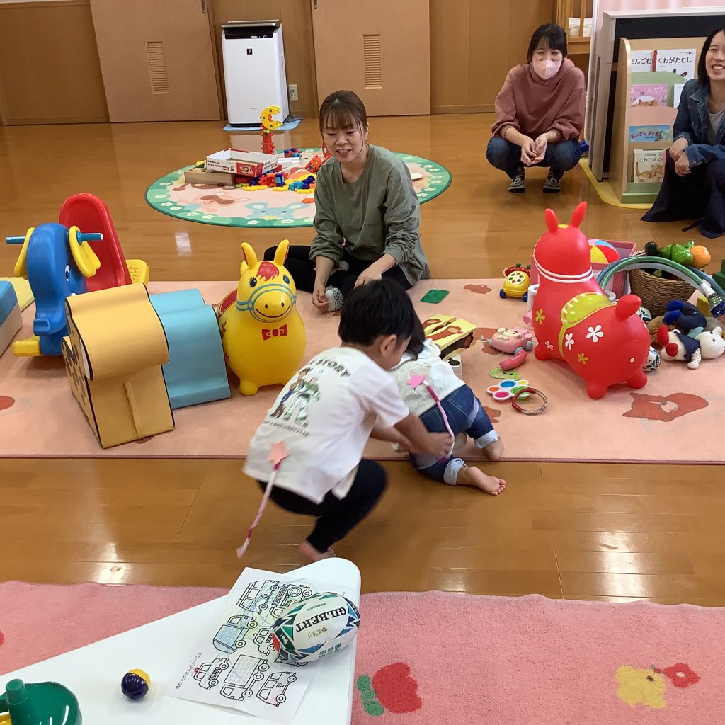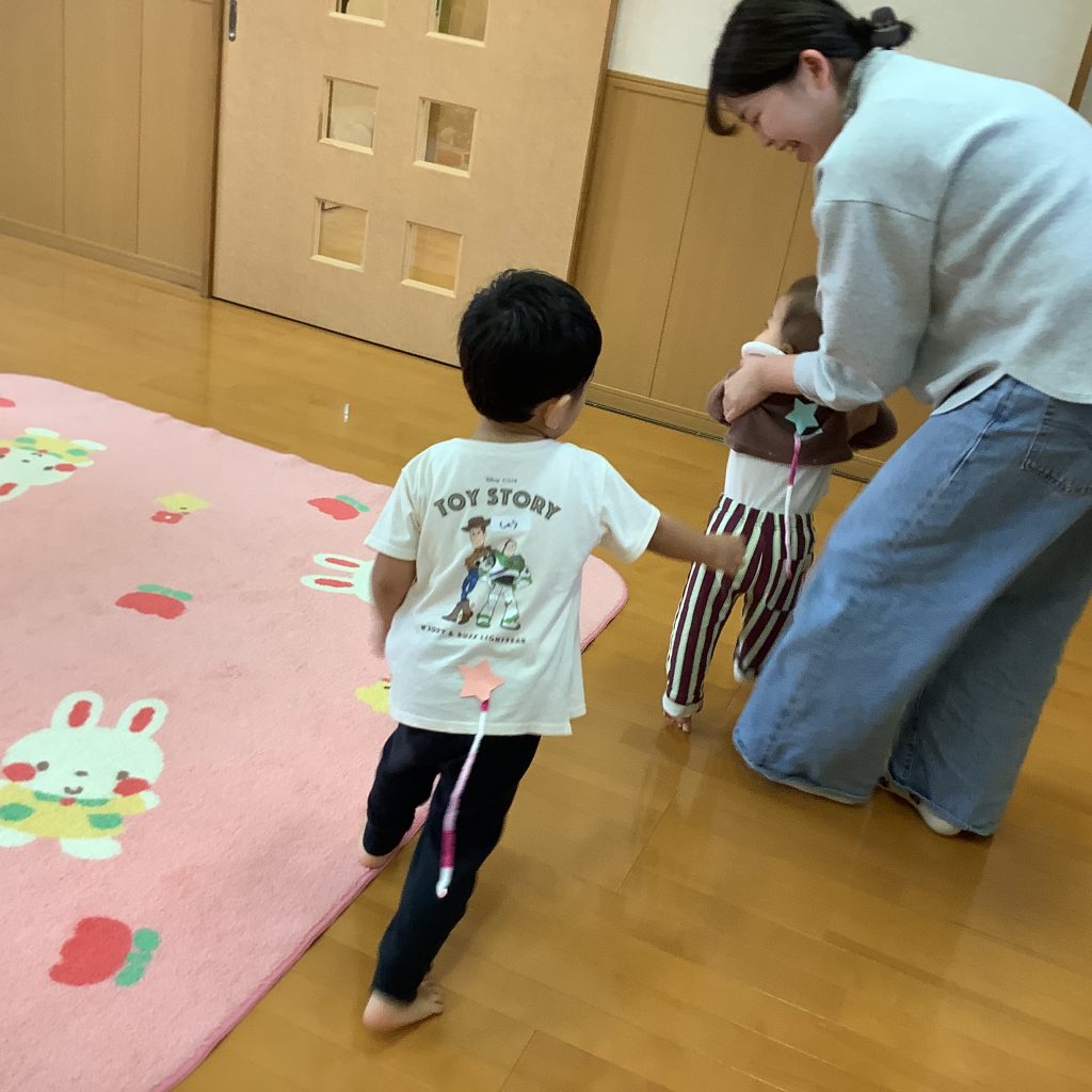 毛糸のしっぽを みんなで取りあって遊びました(10/16)