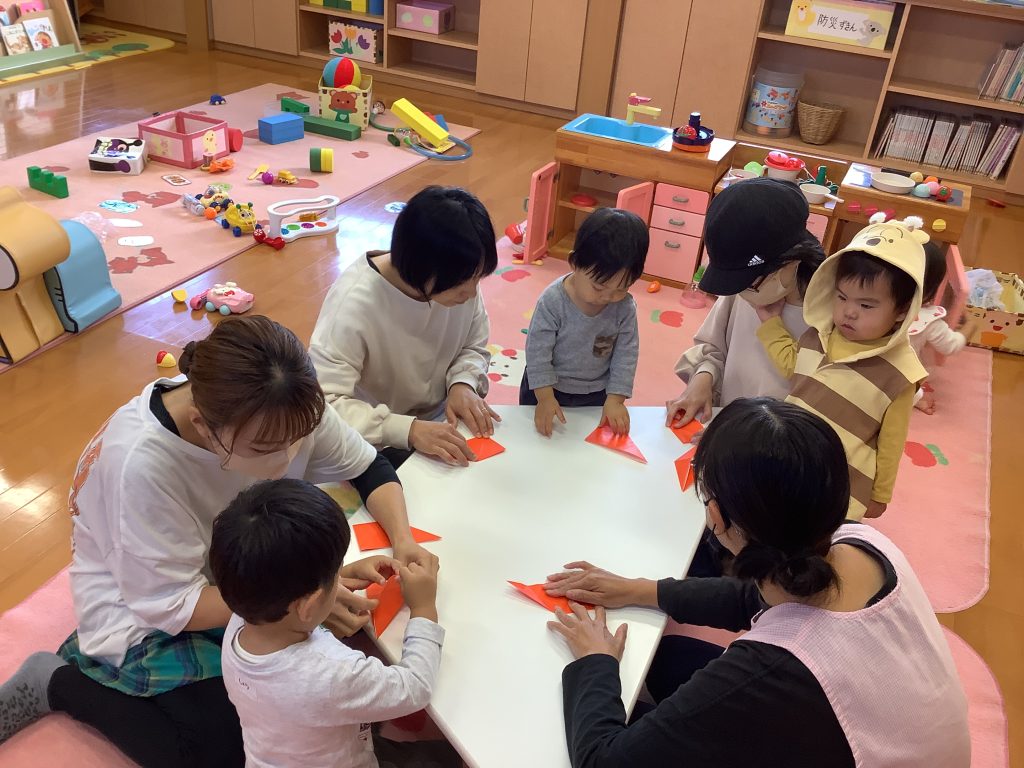 カボチャの折り紙は少し難しいので ママ達で折りました♪