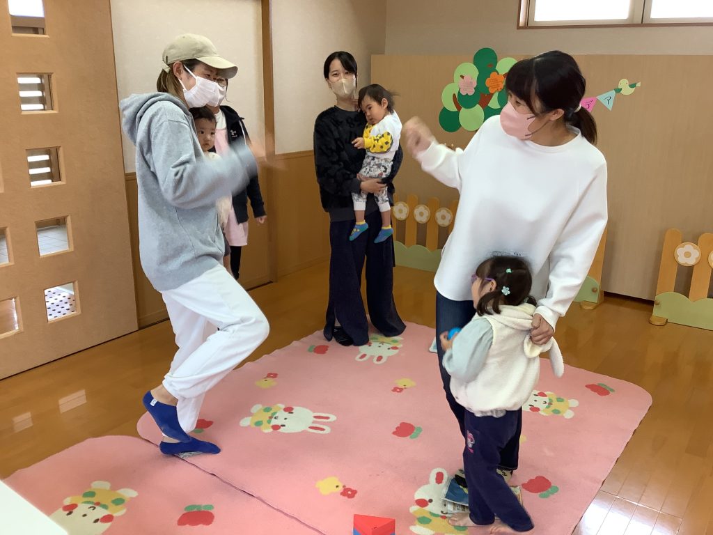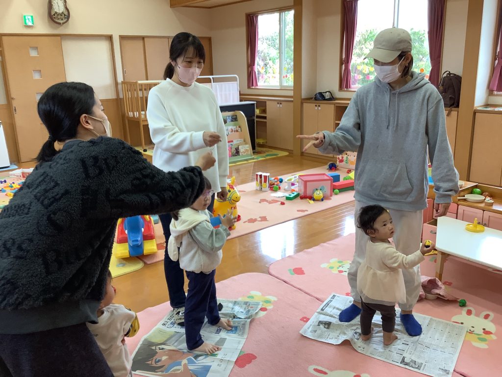 小さくなっていく新聞紙の上で 片足立ち抱っこで ママ達頑張ってくれました✌️