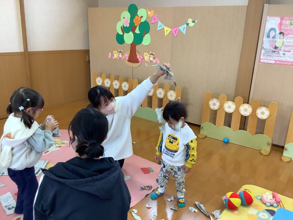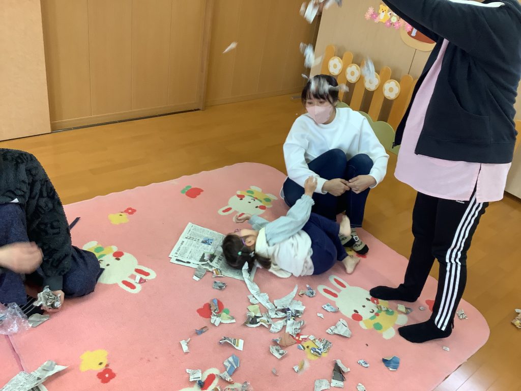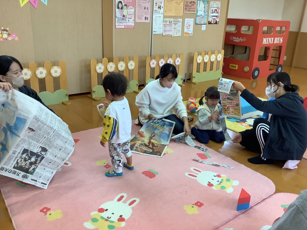 新聞紙を使って いろんな遊びをしました(11/6)
