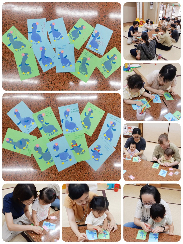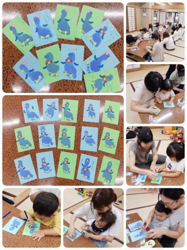☆敬老の日工作☆足形ペンギンハガキ作り☆