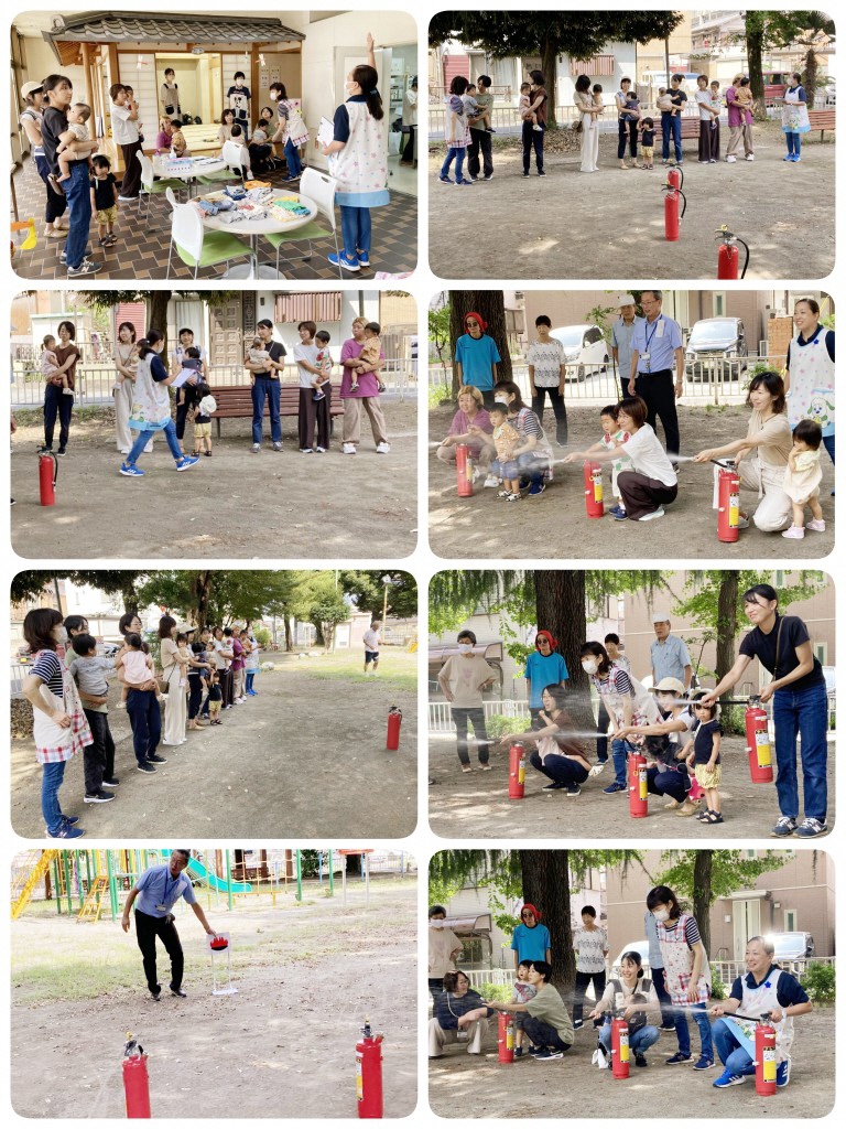 次は、ママと一緒に、消火器の使い方を体験しました。