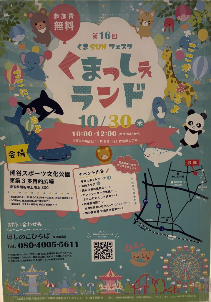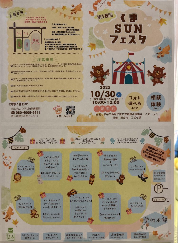 明日30日(木)は、熊谷市の地域子育て支援拠点が一同に集まって開催する「くまSUNフェスタ」です。年に1度の大イベント!