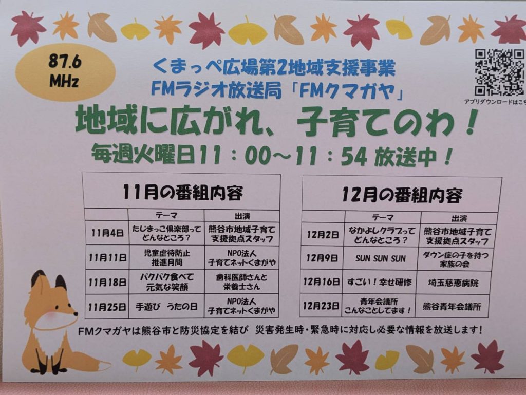 11/4(火)FMクマガヤ放送日&11/6(木)オンライン広場参加はこちらから🎵