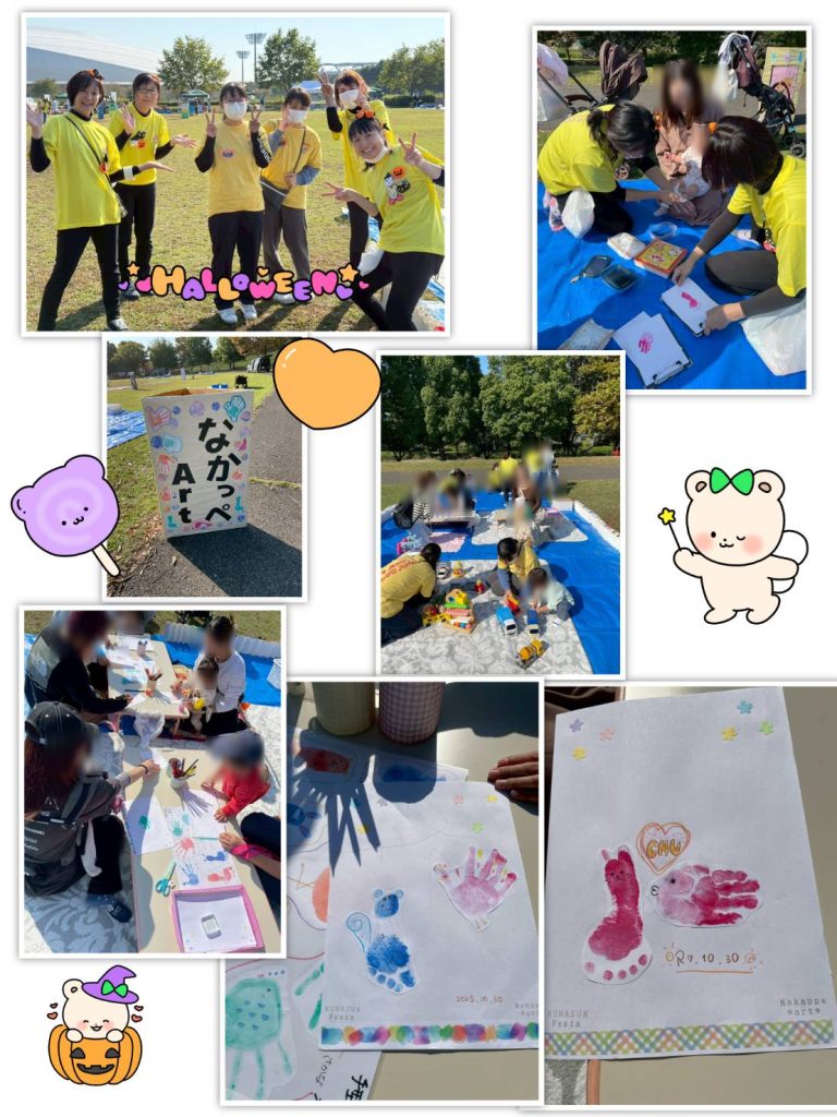 くまっぺ広場第2は、なかよしさんと一緒に手形足型アートのブースにいます!