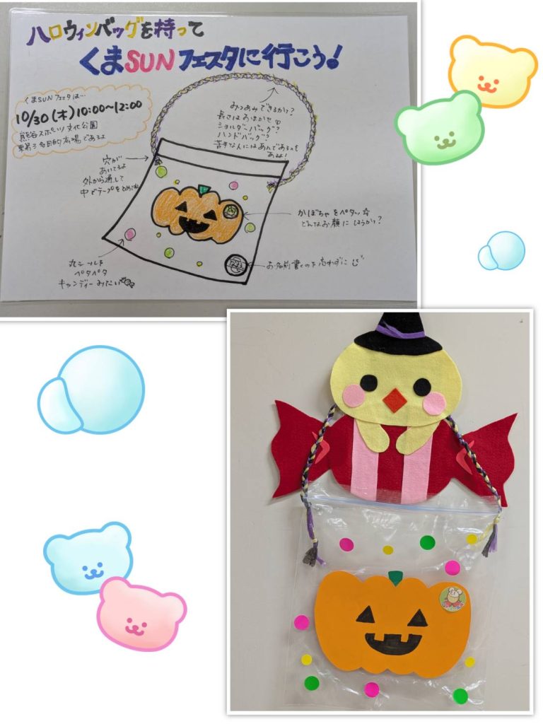 ということで、くまっぺ広場では10/6((月)より、ハロウィンのお出かけバッグが作れます!