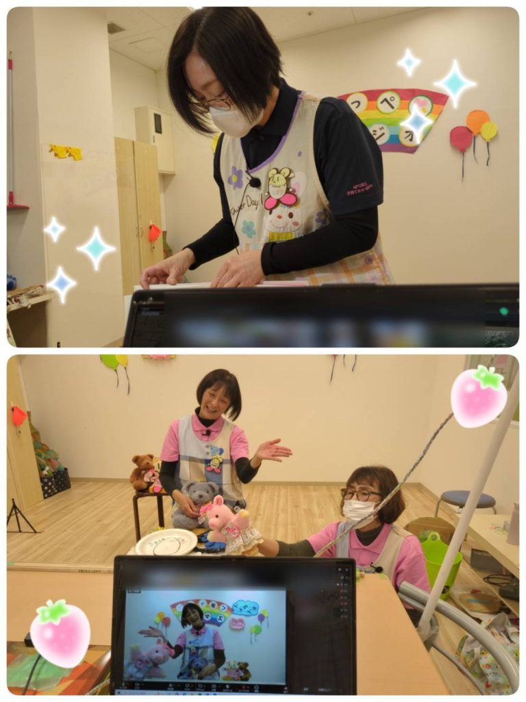↓オンラインくまっぺ広場の様子です🎵お名前タイムで可能でしたらお返事してね~🎵