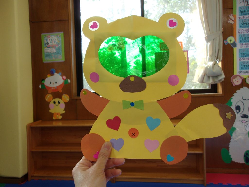 11月の製作はたぬきのサングラス!お顔にあてて目が覗く部分には、カラフルなフィルムがほどこしてあり、カラフルな景色が楽しめますよ♪作って遊べる製作です!