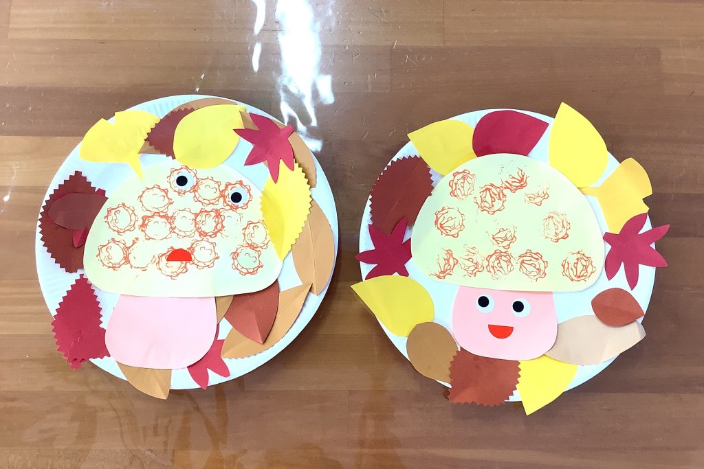 色とりどりの葉っぱを貼ったらかわいいきのこのお家の出来上がり!✨