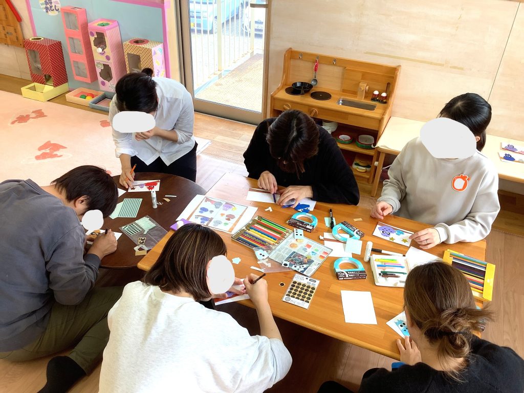 スタッフとボランティアさんに子ども達をみてもらいながらママ同士も互いに協力をしあいながら素敵な作品を完成させました!