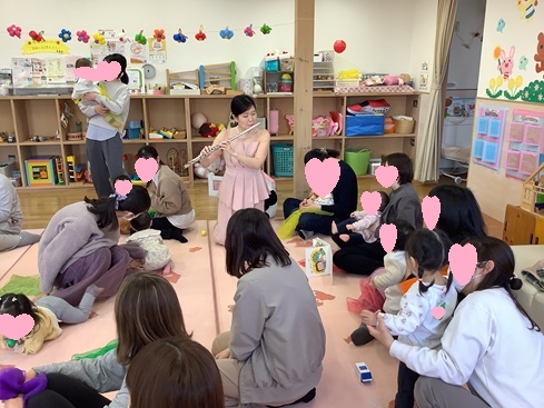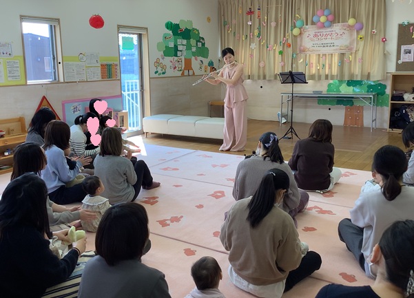 フルートのやさしい音色が流れると、赤ちゃんたちは自然と音に耳を傾け、