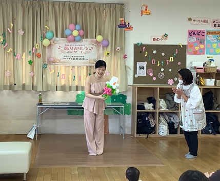 なでしこ保育園の卒園生でもあるフルート奏者 新井志歩さんです。