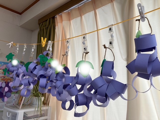 9月は、画用紙の輪飾りで旬のぶどうを作りました。