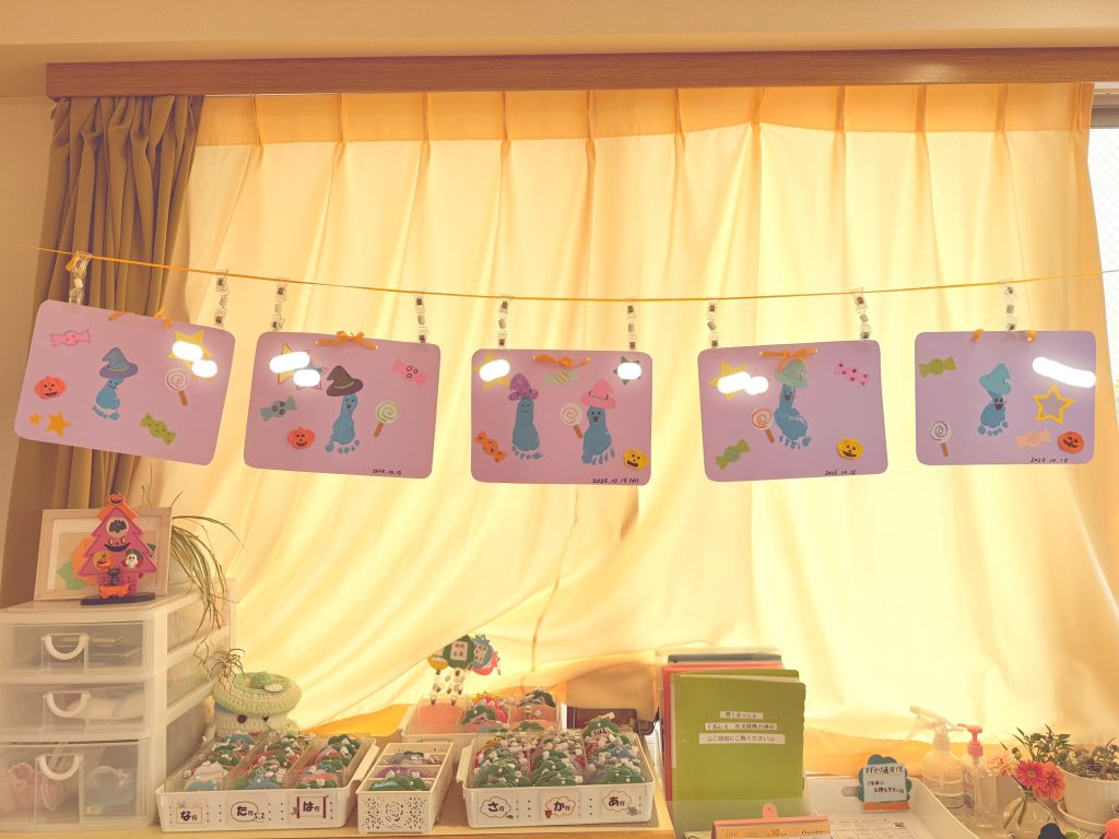 もうすぐハロウィンということで、オバケの足型アートを製作しました!